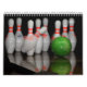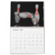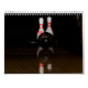 A calendar that features photos of bowling pins.