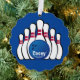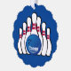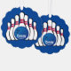 Bowling Design Paper Ornament Card with customizable background colour and text on both sides.