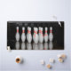 A desk mat featuring a photo of a rack of bowling pins.