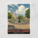A scenic, vintage-style travel poster showcasing a beautiful public park in Bowling Green, Kentucky, centered around an ornate iron fountain. The backdrop features classic brick architecture under a bright, cloudy sky. Perfect for WKU alumni, Kentucky residents, and collectors of retro city and park travel art.