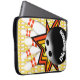 STRIKE! A bowling ball and pins make up this fun laptop sleeve. Customizable so you can add your own text and change the background colour. Makes a great gift!