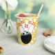 Bowling balls and pins make up this fun paper cup. Customizable so you can add your own text and change the background colour. Great for your next party!.