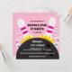 Birthday party invitation for girls featuring a bowling ball knocking down bowling pins. Pink background. Customizable invite text. For custom requests or help with customizing please use the store contact link above.