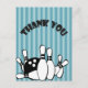 Bowling Party Thank You On Blue Stripes Postcard