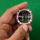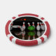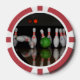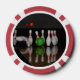 Poker chips featuring a photo of bowling pins being knocked down by a bowling ball.