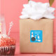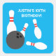 Autocollants carrés de la fête d'anniversaire de bowling pour enfants. Fun party fournitures pour les célébrations. Ajoutez votre propre texte personnalisé. Poignées de bowling et conception des frappes à bille. Bleu ou couleur arrière - plan personnalisée.