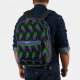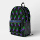 This bowling printed backpack has a all over bowling pattern with bowling pin background pattern with a flaming bowling ball pattern on top with neon green music notes. You can make this bowling pattern smaller or larger on this backpack. This makes a great gift for anyone that is a big bowling fan.