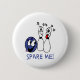 Smiling Bowling Ball with Tongue Wagging and 2 Bowling Pins with the quote "Spare Me!"