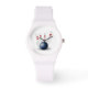 This watch features a bowling design, with a vector image of a black bowling ball, and four red and white bowling pins. The background colour can be customized if desired.