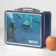 Cette boîte à lunch est affichée avec une photo de requins. La couleur de la boîte à lunch est Bleu Personnaliser cet article ou acheter tel quel. Image sous licence