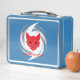 Une lunchbox avec logo WeatherCat et ouragan Dorian à l'arrière