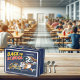 Cette boîte à lunch frénétique représente un chien de dessin animé qui court comiquement après un bus scolaire en forme d'os géant, avec sa langue suspendue et son sac à dos ouvert. Le design est humoristique et relatable pour ces matins quand le bouton de snooze est frappé une fois de trop. "RETOUR À L'ÉCOLE" est écrit dans une police hâtive, légèrement inclinée. Idéal pour les enfants qui aiment bien rire.