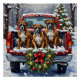 Bring playful, devoted charm to your holiday season with this energetic Boxer Christmas design! This festive scene features three handsome and expressive Boxers sitting attentively in the back of a classic red pickup truck, nestled in a picturesque snowy winter forest. The vintage truck is adorned with a vibrant Christmas wreath, twinkling with red and gold ornaments and warm, glowing lights. Soft snowflakes gently fall, enhancing the winter wonderland effect. A decorated Christmas tree in the background completes this heartwarming picture, making it an ideal Christmas gift for any Boxer owner, dog lover, or admirer of festive and beloved dog art. This design perfectly captures the joyful spirit of the holidays.
