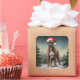 Amidst a winter wonderland, a playful dog enjoys a snowy Christmas morning, leaving adorable paw prints in the glistening snow. Their joy and curiosity add warmth to the enchanting holiday scene, making it truly magical.