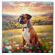 Boxer dog in beautiful field of flowers with sunset. Puzzles, puzzles in tins, planners, notebooks with this design in my stores. Add text to personalize.. Lots of pet and scenery designs in my stores. Add this design to other products. Add text.