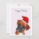 For all the Boxer Dog lovers out there, here's a card for you. A happy holiday from your Boxer dog at Christmas. A Watercolor Boxer Dog wearing a Santa hat sits at center of this Christmas card.