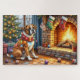Boxer Sitting by Fireplace with Christmas Lights Jigsaw Puzzle