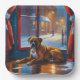 A heartwarming holiday scene featuring a dog sitting peacefully beside a window, surrounded by glowing Christmas lights. This cozy and festive design captures the spirit of the season, perfect for adding warmth and charm to any space. Ideal for dog lovers and holiday decor enthusiasts.