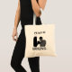 These bags were super cute (I purchased 3). The material is more of a canvas look & feel. The colour of the bag is slightly off white, but the letters look exactly as pictured. I took 3 photos in different lighting. Would recommend! I liked how there was an option to choose the font and colour of the name. The words are legible and the colours are exactly as pictured.