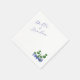 A cocktail napkin with a boxwood graphic in blue script lettering exudes a refined and classic charm. The napkin, typically white or ivory, features a delicate boxwood design—either as a wreath, sprig, or garland—adding a fresh, natural touch. The blue script lettering, elegantly flowing, showcases a message such as a monogram, the couple’s names, or a celebratory phrase like “Cheers!” or “Sip & Celebrate.” The combination of the crisp blue lettering and the lush green boxwood graphic creates a timeless and sophisticated aesthetic, perfect for elevating any special event or gathering.