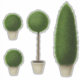 This is a set of 4 pretty Boxwood topiaries with two ball topiaries, one ball standard and a conical shrub that will add the cheer of a well tended garden into your home decor, electronics, crafts, and creative projects.