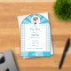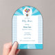 Cheerful baby shower Acrylic invitation with white and blue colour. Topped with a flying baby carried in balloons. A beautiful keepsake of the most beautiful occasion