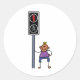 Boy at Pedestrian Crossing with Red Stop Signal Classic Round Sticker