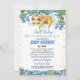 Graphics: watercolor baby sloth, greenery leaves, blue flowers, blue and white stripes.