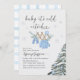 Celebrate the joy of a winter baby shower with our charming Boy Baby Shower invitation, featuring a delicate watercolor design where soft blue baby clothes hang adorably on a clothesline above a snow-covered evergreen tree decorated with matching blue ornaments. The elegant handwritten script adds a cozy, heartwarming touch, while the frosty snowflakes and gentle pastel tones create a magical winter atmosphere that beautifully captures the tenderness and excitement of welcoming a baby boy during the coldest season.
