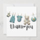Dusty Blue Clothes Line Thank You with a Heart—Love [add name]. Cute hand lettering design. Black and white with blue accents. Ideal for a child's thank you, baby shower, or birthday party.