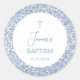 Boy Baptism Blue White Floral Pattern Religious Classic Round Sticker