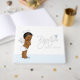 Boy baptism guest book with adorable African American ethnic baby angel on a baby blue and white background. You can easily personalize this baby blue baptism guest book for your event by simply adding the text of your choice in the font style you prefer. You can move and remove the Baptism word and blue cross as needed.