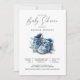A cute whimsical simple little blue baby shoes baby shower invitation for a boy baby shower, in a modern watercolor minimal style. A unique bold modern style.