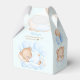 We Can Bearly Wait baby shower favour box. You can choose from 3 sizes of these gable favour boxes simply by clicking on the STYLE dropbox. The soft pastel blue, ivory and beige colours with a cute sleeping baby bear boy on the clouds with the balloons. Easily personalize the text. Great for a lovely baby boy shower party all year round. - Kate Eden Art