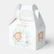 Oh boy! We Can Bearly Wait baby shower favour box. You can choose from 3 sizes of these gable favour boxes simply by clicking on the STYLE dropbox. The soft pastel blue, green and beige colours with a cute sleeping baby bear boy on the clouds with the balloons is so adorable for a baby boy's baby shower. Easily personalize the text. Great for a lovely baby boy shower party all year round. - Kate Eden Art