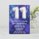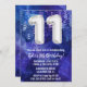 Boy blue white 11th Birthday invitation boys 11 birthday party invitation for a boy blue purple with modern script writing and fun foil balloons.