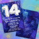 Boy blue white 14th Birthday invitation boys 14 birthday party invitation for a boy blue purple with modern script writing and fun foil balloons.