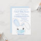 Virtual baby shower invitations with adorable baby boy bunny rabbit wearing mask on a blue dot background. This mail baby shower invitation is easily customized with your event details.
