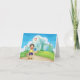 A boy crying outside a hospital. This design looks really effective on these Greeting Card