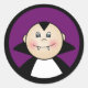 Boy Dracula Halloween t-shirts, mugs, trick or treat tote bags, stickers, and other Halloween items with a boy Dracula on a purple and black circle. You can customize these Halloween items with text or a name.