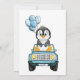 Boy Drive Through Baby Shower Penguin in Car Invitation