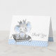 Boy elephant baby shower thank you cards with adorable baby elephant prince on a blue polka dot background. These cute elephant thank you cards can be customized with your printed message inside, or leave them blank for your handwritten message.