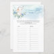 This chic boho style design for Name That Tune - funny boy Baby Shower game features watercolor hand painted cute baby elephant seating over the fresh eucalyptus greenery wreath and mixed dusty blue flowers - which makes this set suitable for a boy Baby Shower.