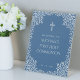 Boy First Communion Blue Silver Leaves Welcome Pedestal Sign