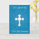 Boy First Communion Cross and Rays on Blue Wood Card