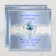 Boy First Holy Communion White Lace Blue Pearl 2 Invitation