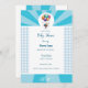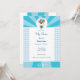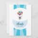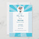 Cheerful baby shower invitation with white and blue colour. Topped with a flying baby carried in balloons. A beautiful keepsake of the most beautiful occasion