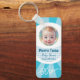 Delightful blue and white baby shower keychain with a balloon, a sweet keepsake for welcoming a baby boy.