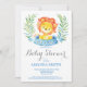 Boy Lion Baby Shower Invitation Blue and Grey Card. Boy Baby Shower Invite. Watercolor Floral Flower and Leave. For further customization, please click the "Customize it" button and use our design tool to modify this template.