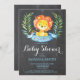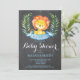 Boy Lion Baby Shower Invitation Blue and Chalkboard Card. Boy Baby Shower Invite. Watercolor Floral Flower and Leave. For further customization, please click the "Customize it" button and use our design tool to modify this template.